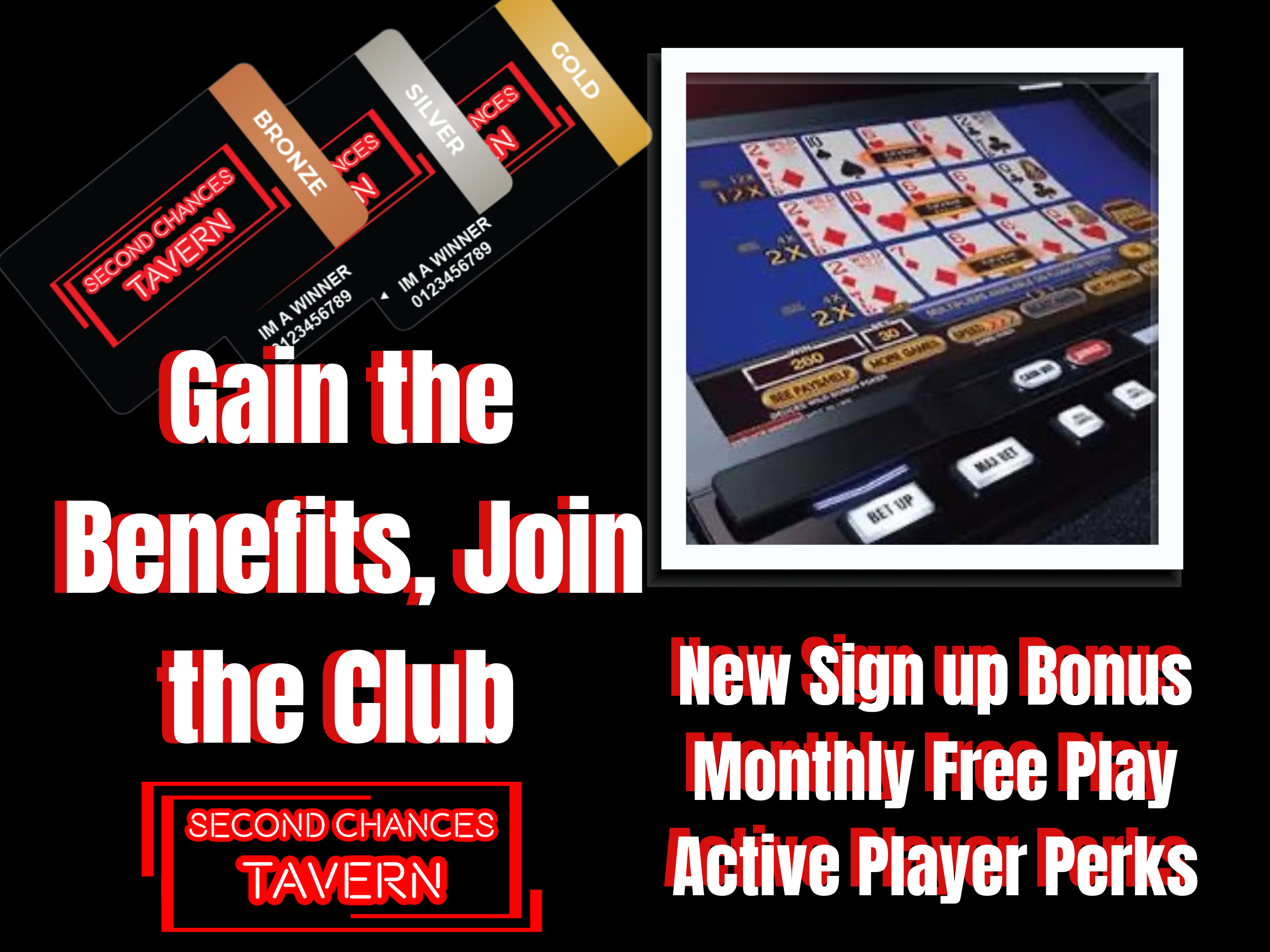Your local Gaming and Sports bar. Open 24 hours, our primarily scratch kitchen has unique options with weekly specials. We are the perfect place to grab a drink, enjoy a meal, watch a game, and press your luck. We all need second chances, let us be yours!